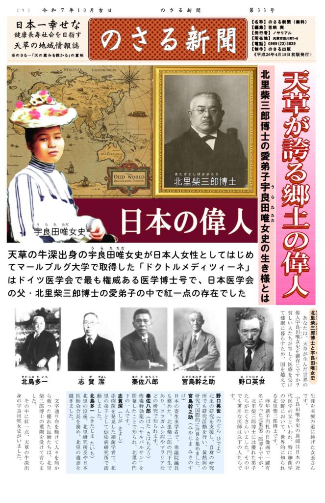 第33号「天草が誇る郷土の偉人・北里柴三郎博士の愛弟子宇良田唯女史の生き様とは」